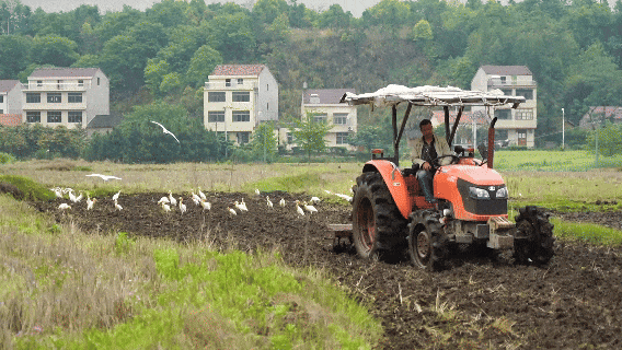 转眼到了谷雨时节,万物生长,一年中最重要的农事——春耕,正如火如荼地进行,农人以紫云英做贺礼,化作春泥,以诚意致敬土地,白鹭跟随旋耕机翩翩起舞。