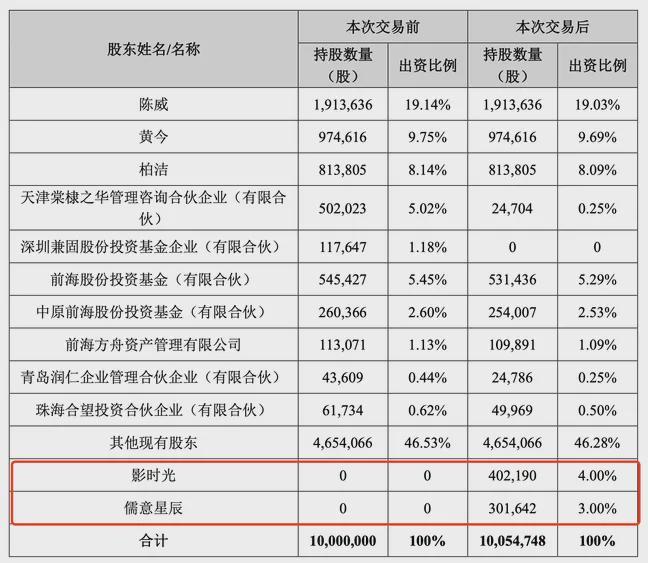 其中,在原有股份上,影时光拟以6898.97万元认购3.69%的股份,儒意星辰拟以5174.23万元认购2.77%的股份。而在新增股权上,影时光拟以1329.6万元购得乐自天成0.31%的股权,儒意星辰拟以997.2万元购得0.23%的股权,双方合计投资总额约1.44亿元。按此推算,若以新增注册资本金额计,乐自天成对应估值约为42.9亿元,而若以股权转让的估值计,乐自天成的对应估值则约为18.7亿元。