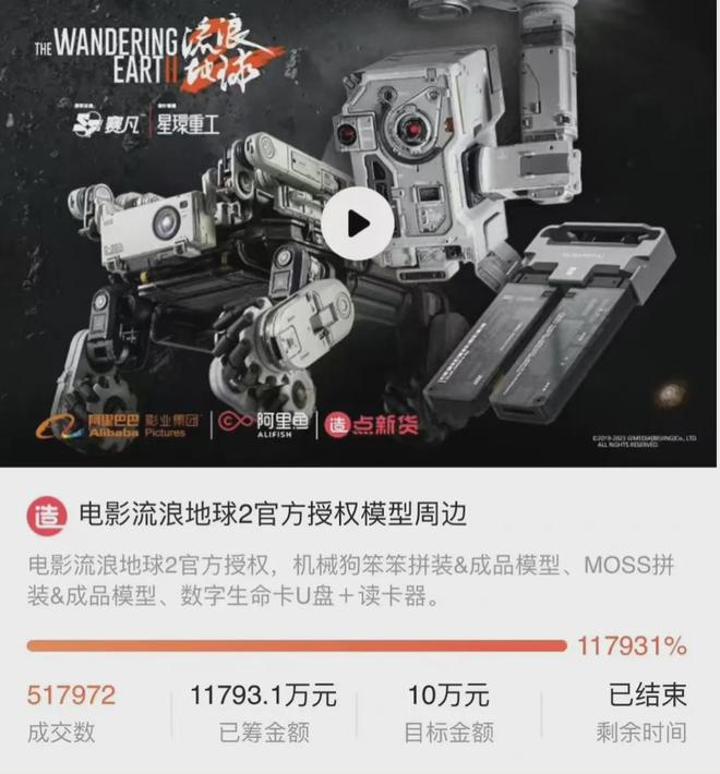 犹记得在2019年,《哪吒之魔童降世》官方衍生品众筹上线七天后,累计预售额超过550万元,刷新了当时中国动漫行业众筹纪录。到了2023年,《流浪地球2》官方衍生品众筹结束时的预售额已经达1.2亿元,热门IP衍生品市场的爆发潜力可见一斑。这个过程反映出,国内影视IP衍生品市场在持续扩大,与此同时,“谷子经济”迎来爆发期,加快了影视IP衍生品开发的脚步。