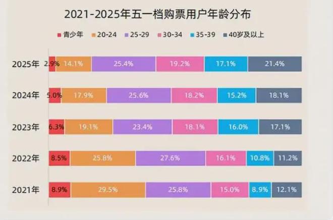 一来,“谷子经济”与年轻市场关联紧密,是年轻群体助推下兴起的新兴产业,而电影市场在阶段性回落的过程中,流失的消费群中也有不少年轻人。以刚过去的五一档为例,灯塔专业版出品的《2025五一档电影市场洞察报告》数据显示,今年五一档24岁以下观众占比为17%,这一数据呈现出明显的逐年递减的趋势。