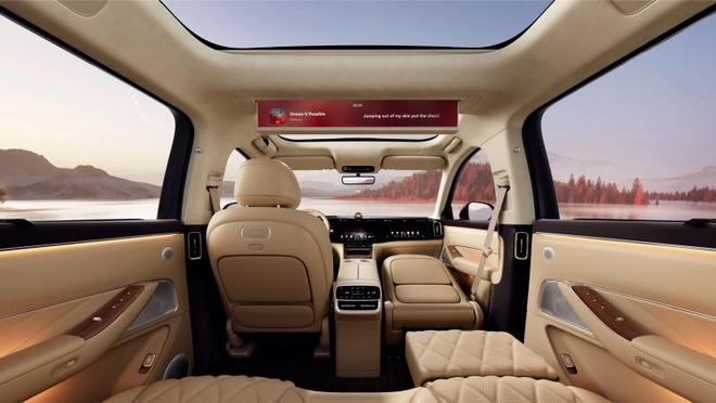 HarmonyOS 4智能座舱是这一切的核心。满配的超十屏互联,构建了一个沉浸式的数字空间。副驾拥有专属的16英寸娱乐屏,享受独立影院的快乐;后排则可通过32英寸的升降式巨幕投影,一键开启私人影院模式,配合HUAWEI SOUND音响带来的超感空间音频,全家共赏一部电影,其乐融融。创新的悬浮窗模式,让幕布在行车时也能悬停显示导航、歌词或萌宠动画,既不遮挡视野,又增添了趣味。
