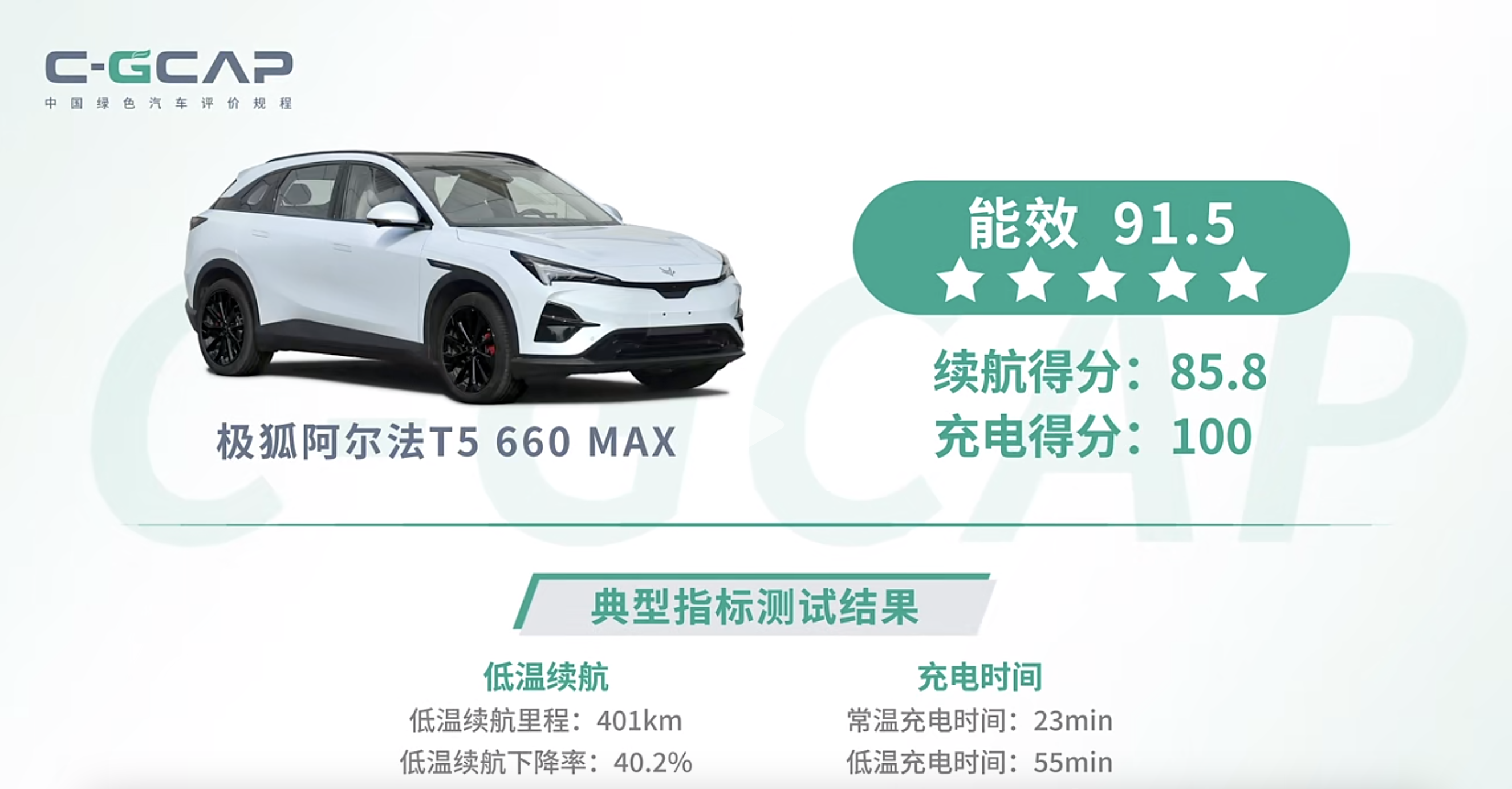 能效板块上阿尔法T5 获得91.5分,成为30万以内纯电车第一,超过21万级的极越01Max(90.9分)、26万级的小鹏G9 702 Pro(89.9分),并在充电速率、充电兼容性、充电防护上连获三个100分;在恶劣的低温和高温环境中,阿尔法T5的续航损失率明显优于其他车型,两项成绩分别领先平均分10分和8.1分,此外,在低碳方面,阿尔法T5同样获得满分100分,超出平均得分3.2分。